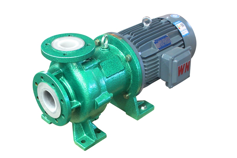 泵運轉時,氟塑料磁力泵必須用少量的液體對內(nèi)磁轉子與隔離套之間的環(huán)隙區(qū)域和滑動軸承的摩擦副進行沖洗冷卻。當冷卻潤滑液不夠或沖洗孔不暢、堵塞時,將導致介質(zhì)溫度高于永磁體的工作溫度,使內(nèi)磁轉子逐步失去磁性,使磁力傳動器失效。冷卻液的流量通常為泵設計流量的2%-3%,內(nèi)磁轉子與隔離套之間的環(huán)隙區(qū)域由于渦流而產(chǎn)生高熱量。當介質(zhì)為水或水基液時,可使環(huán)隙區(qū)域的溫升維持在3-5℃;當介質(zhì)為烴或油時,可使環(huán)隙區(qū)域的溫升維持在5-8℃。